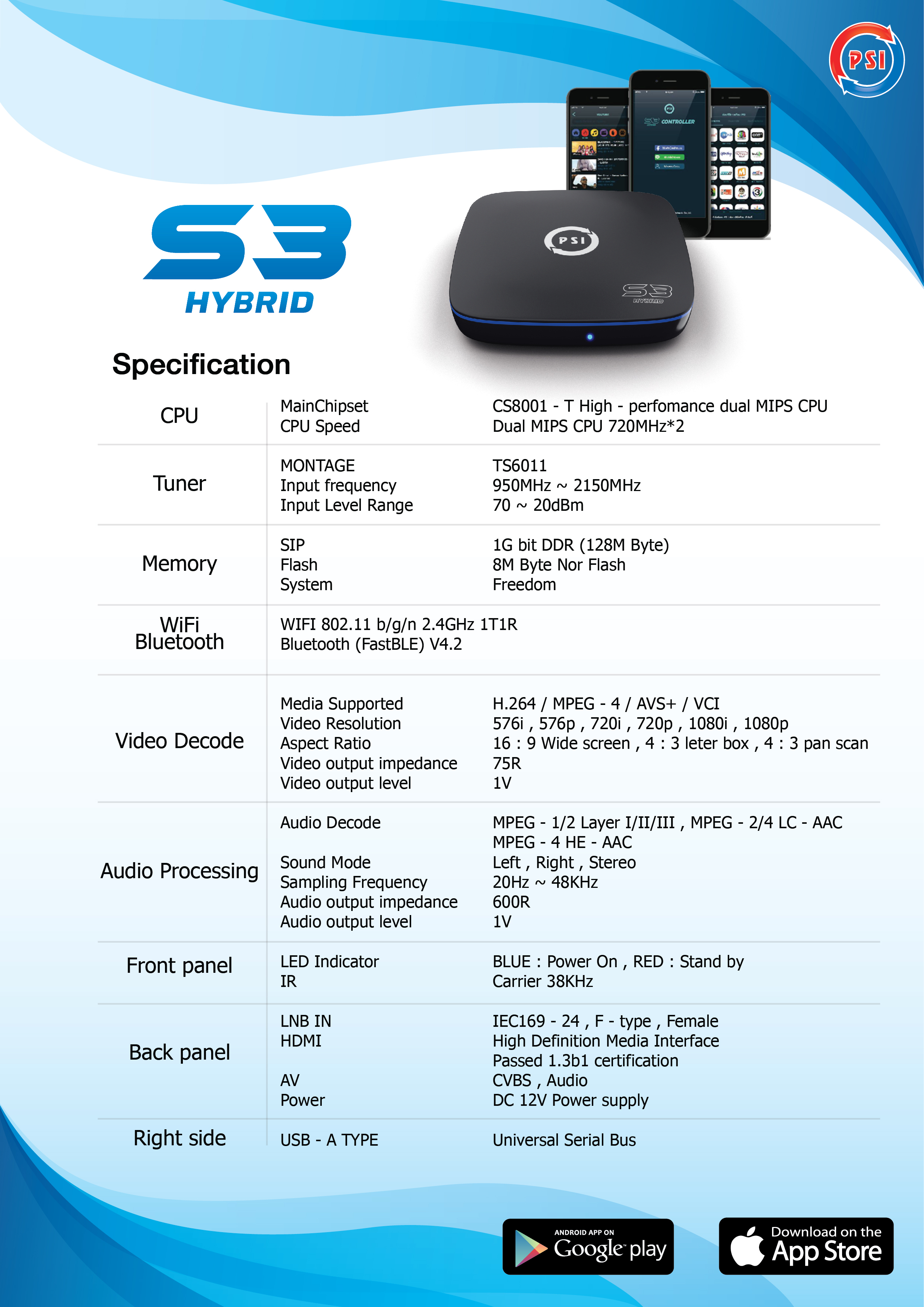 กล่องดาวเทียม PSI พีเอสไอ S3 ไฮบริด #11790-21190-50-620118